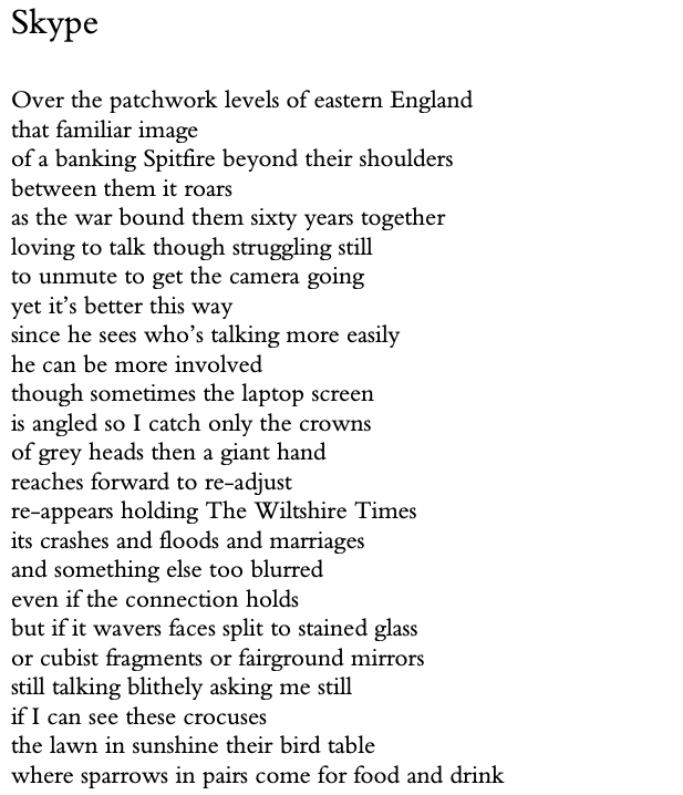 This week’s Friday Poem is ‘Skype’ by Martyn Crucefix from his collection The Lovely Disciplines.