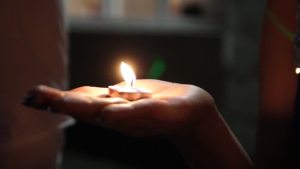 Nash’s poem opens at the heart of an unorthodox family with one of Heimdallr’s mothers speaking tenderly. The whole family have gathered round a campfire, a hearth, in various states of sleep and wakefulness, cooking, sword-sharpening, comforting and acting as a seer. She tells Heimdallr the story of his remote origins in the primordial time when division was not known: “a tale of giants, a tale of gods / in early time, in frost-fire time”. A time of community and peace: “we lived snore-close, heart-close”. Also a time before language (or at least, language as we now have it) and Nash makes Ymir – the representative figure of this lost age – a “mother-father”, represented by the possessive determiner “their”. As in the traditional stories, Ymir creates/finds Buri in a glacier and Odin is Buri’s grandson. It is Odin who first declares division: