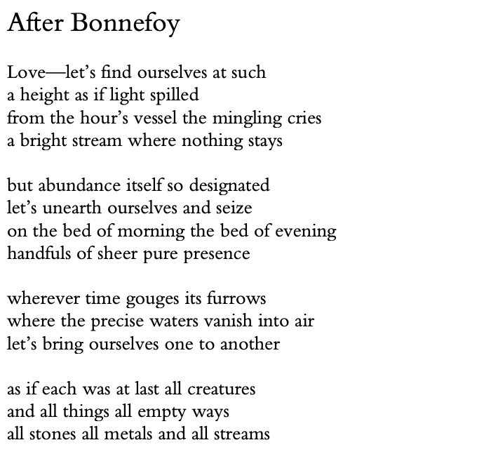 This week’s Friday Poem is ‘After Bonnefoy’ by Martyn Crucefix from his collection The Lovely Disciplines.