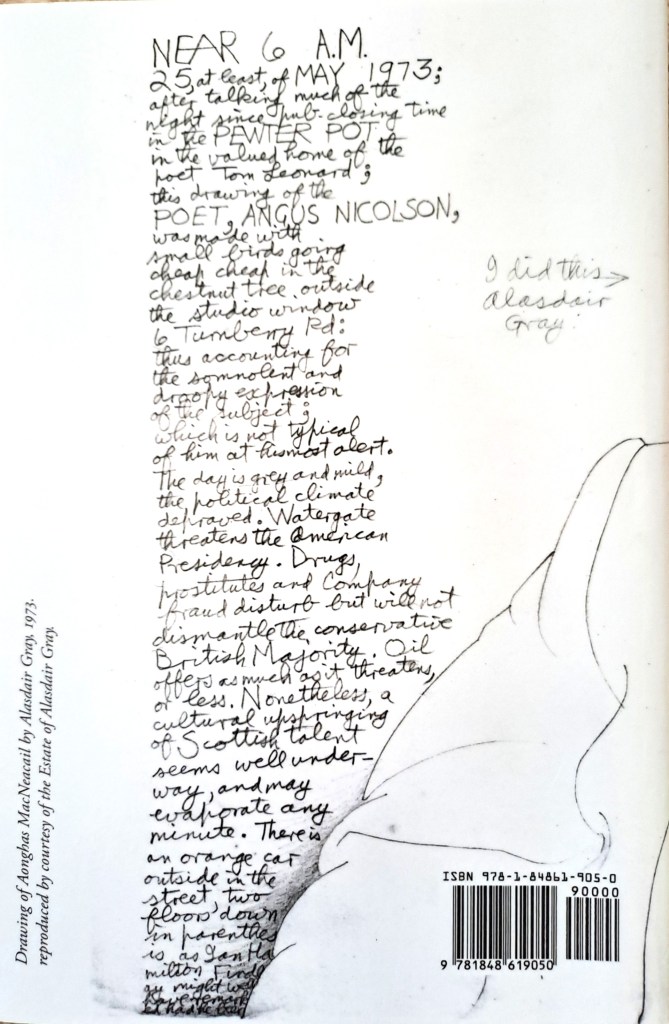 It is as a poet writing in Gaelic that MacNeacail – who died in 2022 – is most well-known, though he would himself provide translations of his work into English, what, in the poem ‘last night’, he refers to as Gaelic’s ‘sister tongue’. There were also poems written in Scots and these variants give an insight into what Colin Bramwell here calls ‘the language situation in Scotland’ within which MacNeacail worked all his life. For a number of years, MacNeacail lived and wrote under the anglicised name Angus Nicolson, but always considered himself a tri-lingualist and antagonistic to the kind of divisiveness such a ‘situation’ might give rise to. His natural inclination was democratic, pacifist, anti-authoritarian, and modernist. Now, the collection, beyond (eds. Colin Bramwell with Gerda Stevenson (Shearsman Books, 2024)) gives readers a selection of poems written in English by Aonghas MacNeacail over the past 30 years. One of the implications of the book’s title is his deeply held wish to look ‘beyond’ division, not to anything transcendental (MacNeacail’s focus was always this world, not some other), but to the next term in an on-going dialectical process. One of the little gems from ‘the notebook’, included here, imagines a cup of knowledge, the liquor within, also knowledge, a grain is added and stirred, and the grain then consumes the liquor and continues to ‘grow, root, sprout / find elbows, crack the cup // find clay’.