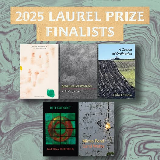The shortlist for the eco-poetry/nature poetry Laurel Prize 2025 has just been announced. The finalists – judged this year by the poets Kathleen Jamie (Chair), Daljit Nagra, and the former leader & co-leader, Green Party of England and Wales Caroline Lucas – are (in alphabetical order):