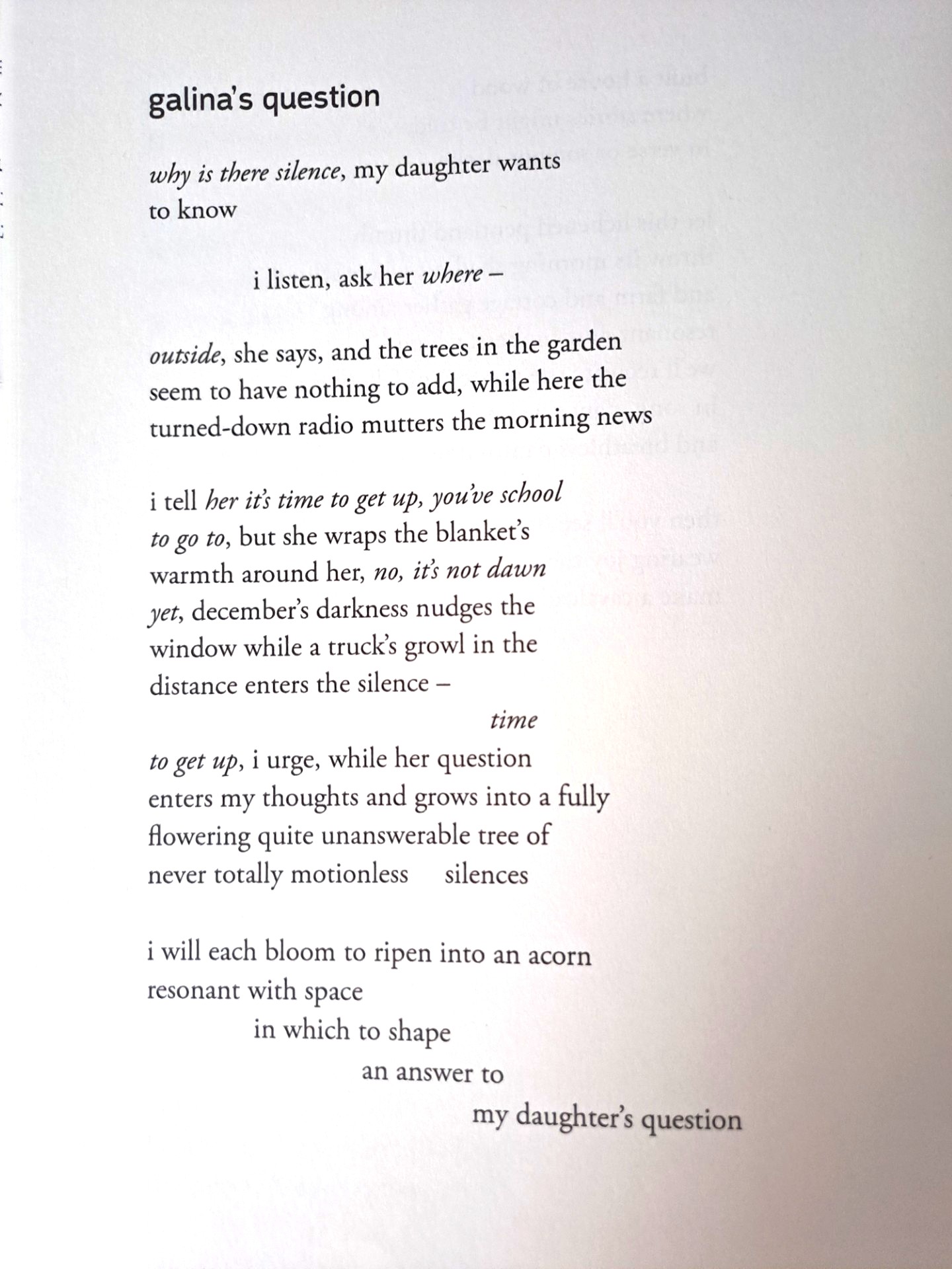 Of course, ‘home’ is partly temporal: the past, our family, our childhood. The book opens with memories of old Yugoslavia, what might be Stupica’s parents’ experiences in Zagreb in 1941. But memory itself is uncertain: ‘I try to breathe through some other time, / some other life [. . .] I feel I can touch it. Then I let go’ (‘The Blue Gondola’). Her mother’s recipe for ‘Chinese Cake’ gives a different sort of access to the past and perspectives through time (more than place) is important in ‘The Last Photo Together’ where two children are photographed with their old grandfather. The young girl gazes out of the image ‘towards a different place’, towards the future. But the book’s fifth poem is already called ‘The Point of Leaving’ and the sense of deracination is powerfully apparent: ‘Instead of the old plum tree, a house, / instead of the apple tree, a fence’. Perhaps like all such moves, there is optimism at the start (‘serenity in the eye’), but subsequent poems tell a different story.